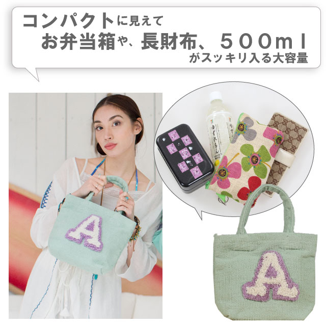 【メール便1枚のみ送料無料】ぽこもこバッグ【パステルアルファベット】 イニシャル A R K Y M S 手織り トート プレゼント ギフト 母の日【M】
