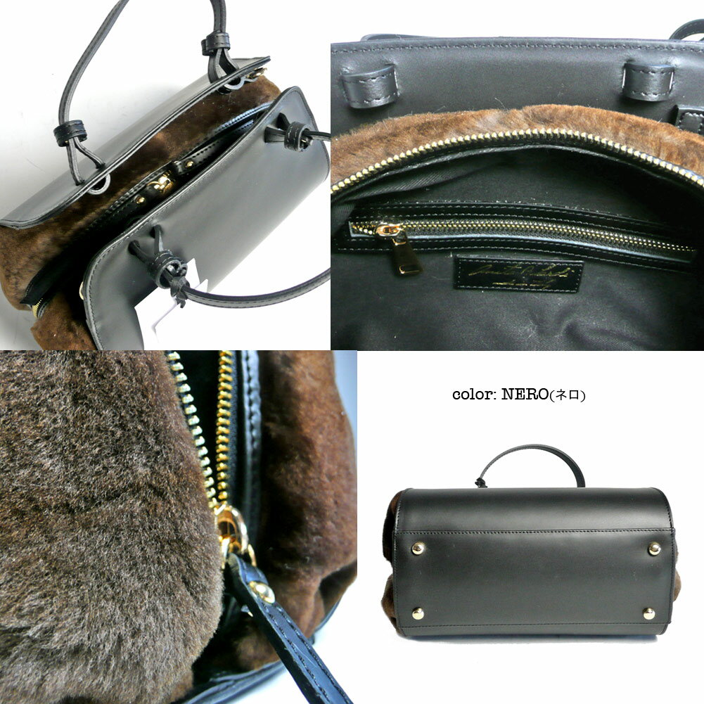 アニタ ビラルディ ANITA BILARDI カーフレザー×ムートン ボストンバッグ AGENT MINI RUGAレディース バッグ 革 通勤 通学 軽い 軽量 おとな 可愛い おしゃれ ブランド ファー もこもこ ブラック 黒 ベージュ