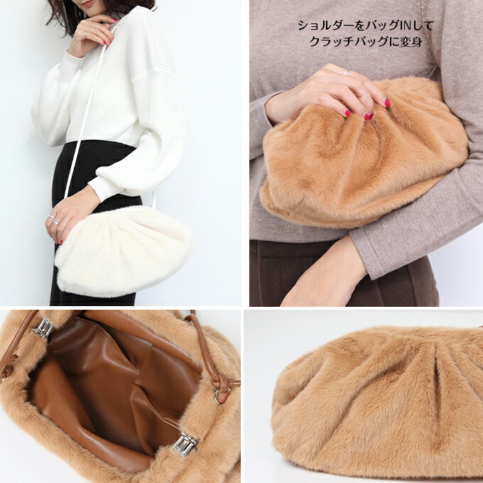 2WAY ファーバッグ 斜め掛け ショルダーバック もこもこ ハンドバッグ クラッチ 肩掛け 鞄 暖かい チェーン もこもこ ファー 冬 IPAD入ボア 鞄斜めかけ lucky-anna