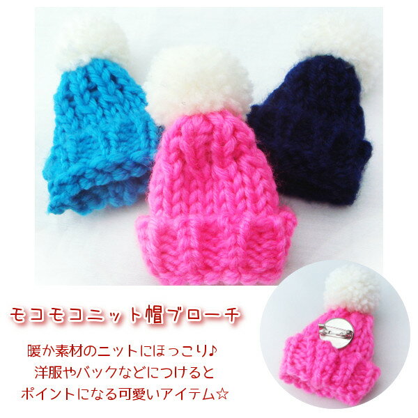 ニット帽ブローチ☆ピンク 青 ブルー ネイビー 紺色 ポンポン ぽんぽん 毛糸 モコモコ ショールピン ギフト プレゼント【メール便配送】