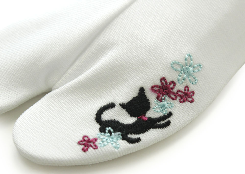 【七五三 子供足袋 ストレッチ足袋 白色地ネコとお花柄】三歳 五歳 七歳 女の子 柄足袋 たび 伸びる 伸縮 コハゼなし 靴下 ソックス 【メール便発送可能】 【6587】 【セール対象外】送料無料企画対象外】