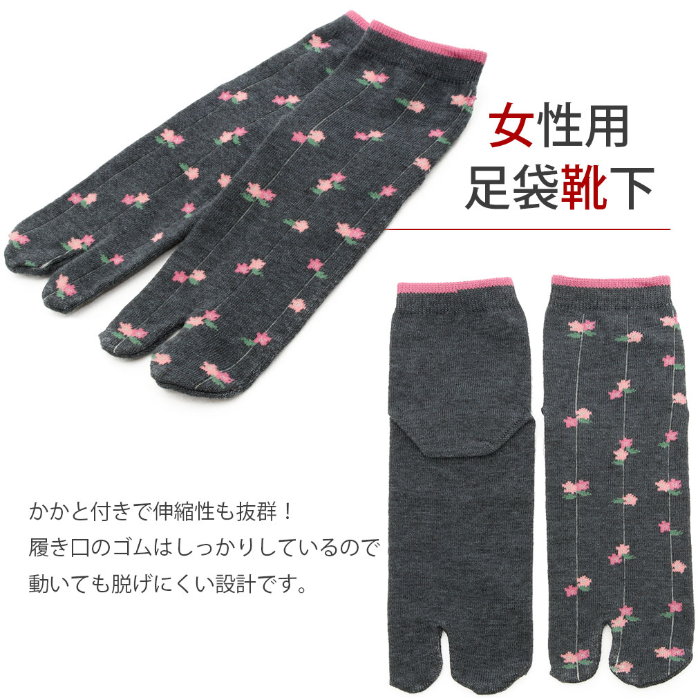 足袋ソックス 普段用 <ダークグレー/小花>【 メール便対応可 靴下 ソックス 足袋 足袋靴下 和柄 和小物 カジュアル 着物 小紋 街着 個性 雑貨 和 レトロ モダン ハイカラ 洒落 カラフル 花 桜 灰 】