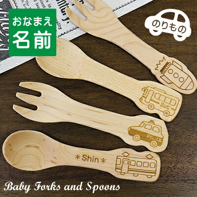 父の日 名入れ スプーン 木 出産祝い プレゼント ≪木製スプーン・のりもの≫フォーク ベビースプーン 食器 お食い初め 名前入り 名入り ネーム 木製 ウッド おしゃれ かわいい 赤ちゃん ギフト 男の子 女の子 1歳 2歳 誕生日 実用的 お祝い 【翌々営業日出荷】